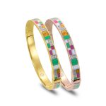 A WHISPERED PROMISE OF ARCHITECTURAL ELEGANCE. EACH BRACELET IS A DELICATE WINDOW FRAMING LIFE’S BEAUTY. DIAMONDS TWINKLE LIKE SUN-KISSED GLASS, AND THERE, ON THE ENAMEL CANVAS, BRUSHSTROKES OF COLOR—SUBTLE, YET VIVID. WEAR IT, AND YOU WILL CARRY THE ESSENCE OF LIGHT FILTERING THROUGH STRUCTURED LINES. THE GENTLE GLOW ESCAPING THROUGH OUR WINDOWS SILENTLY ANNOUNCES THAT WITHIN THESE WALLS IS A CARING SOUL