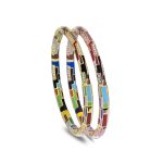 A WHISPERED PROMISE OF ARCHITECTURAL ELEGANCE. EACH BRACELET IS A DELICATE WINDOW FRAMING LIFE’S BEAUTY. DIAMONDS TWINKLE LIKE SUN-KISSED GLASS, AND THERE, ON THE ENAMEL CANVAS, BRUSHSTROKES OF COLOR—SUBTLE, YET VIVID. WEAR IT, AND YOU WILL CARRY THE ESSENCE OF LIGHT FILTERING THROUGH STRUCTURED LINES. THE GENTLE GLOW ESCAPING THROUGH OUR WINDOWS SILENTLY ANNOUNCES THAT WITHIN THESE WALLS IS A CARING SOUL