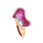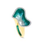Rings in 18K yellow or rose goldset with diamonds and delicately hand-painted enamel.